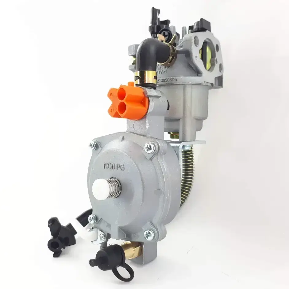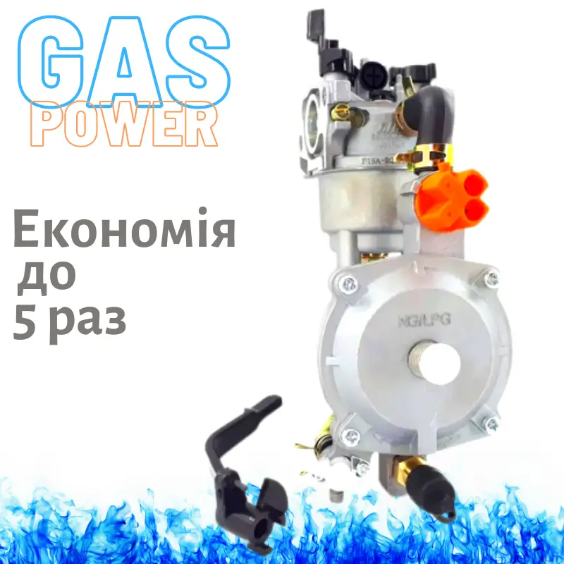 - видозмінений карбюратор для бензинового двигуна генератора, який технічно доопрацьований для можливості підключення до нього та бензинового палива та газової магістралі.