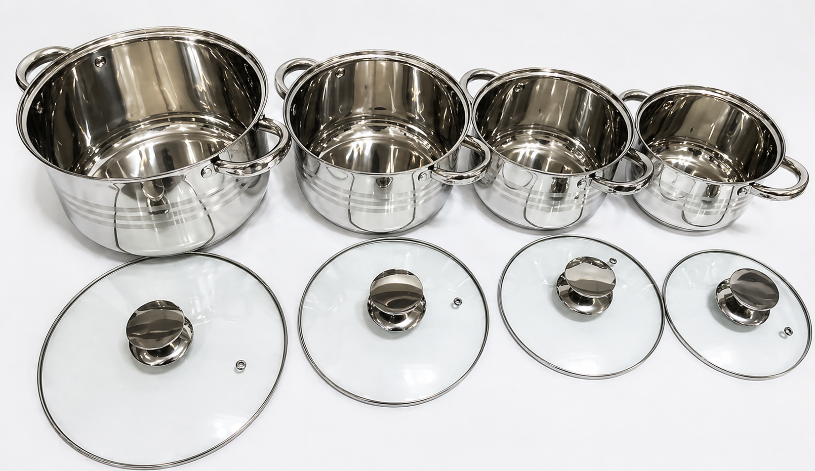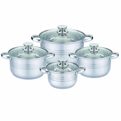 Каструлі з нержавіючої сталі з капсульним дном / Набір каструль UNIQUE UN-5032 з кришками 8 предметів (2,1 л, 2,9 л, 3,9 л, 6,2 л)