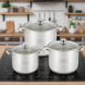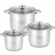 Каструлі з нержавіючої сталі з капсульним дном / Набір каструль UNIQUE UN-5041 з кришками 6 предметів (7,2л, 9л, 11,1л,)