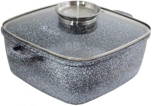 Котел UNIQUE UN-5205 виготовлений з литого алюмінію з багатошаровим гранітним антипригарним покриттям. Перевага даного покриття - це багатошарове покриття з декількох шарів кам'яної крихти на мінеральній основі. Таке покриття визнано одним із найбезпечніших для здоров'я людей та навколишнього середовища. Котел UNIQUE з антипригарними властивостями, він зносостійкий та довговічний. Стильний та зручний, а також довговічний казан UNIQUE з гранітним покриттям знайде своє місце на будь-якій кухні.