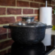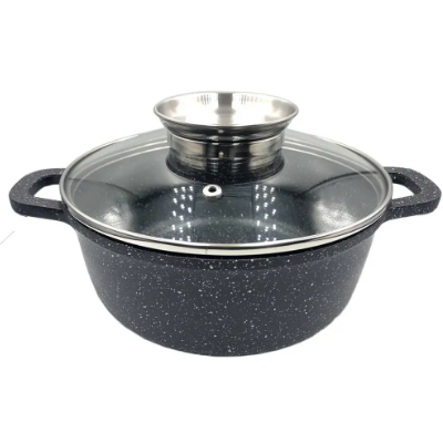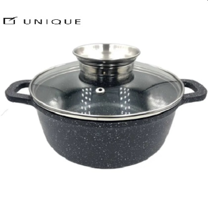 Котел UNIQUE UN-5276 - виконаний з міцного алюмінієвого сплаву з покриттям та має антипригарне мармурове покриття, кришку з жароміцного скла з отвором для виходу пари та дозатором для наливу олії.