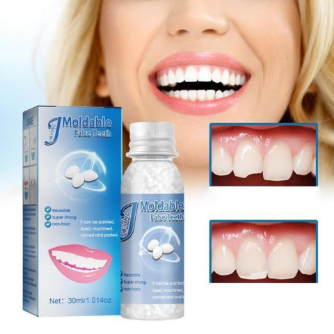 Полімерний клей для зубів у гранулах – зручне рішення для тимчасового протезування та маскування зламаних чи відсутніх зубів.
