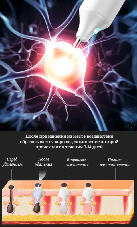 Після процедури дома впливу утворюється скоринка, загоєння якої відбувається протягом 7-14 днів.