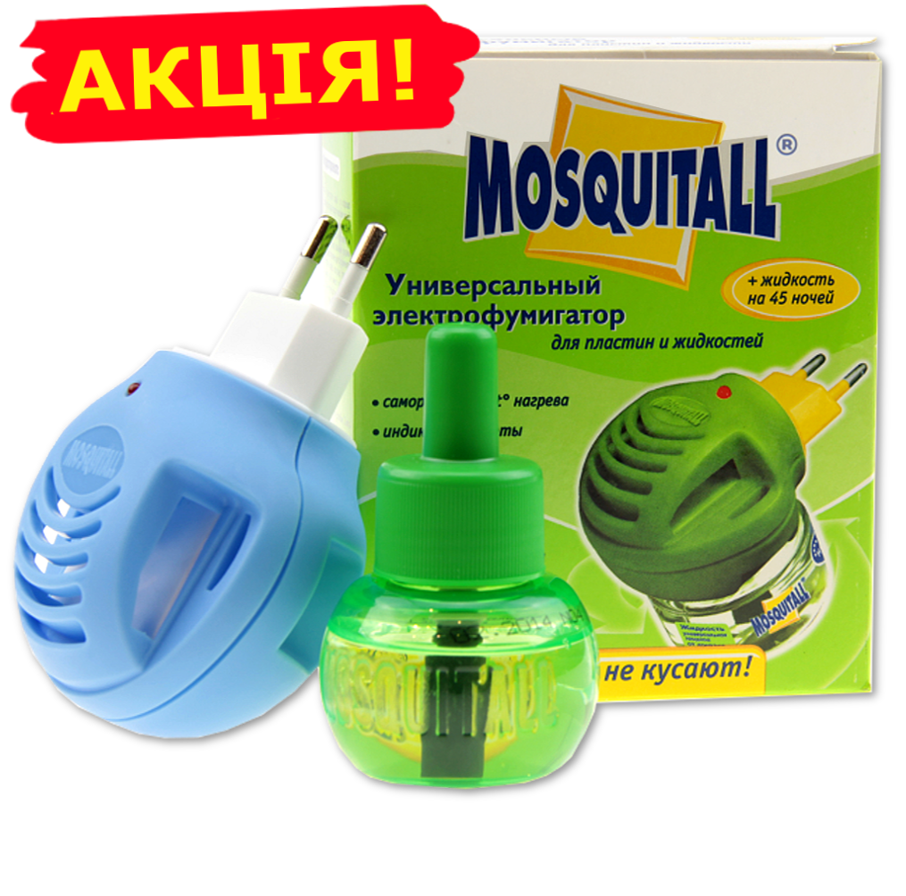 Mosquitall комплект від комарів, прилад + рідина 45 ночей універсальний захист