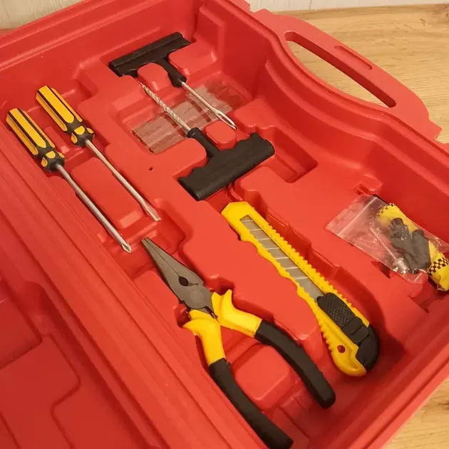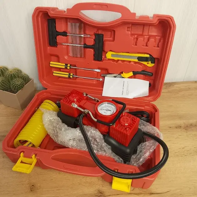 Автомобільний двопоршневий компресор із набором інструментів у кейсі RED