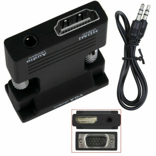 Може бути використаний у ноутбуках, проекторах, моніторах, планшетних ПК та інших HD пристроях. Перетворює цифровий відео- та аудіосигнал HDMI на аналоговий інтерфейс VGA. Допомагає вирішити проблему конфлікту між цифровими та аналоговими сигналами, при цьому ви не змінюєте пристрій і, як і раніше, користуєтеся HD обладнанням. Перетворювач дозволяє отримувати звук з джерела HDMI через 3.5 мм джек.