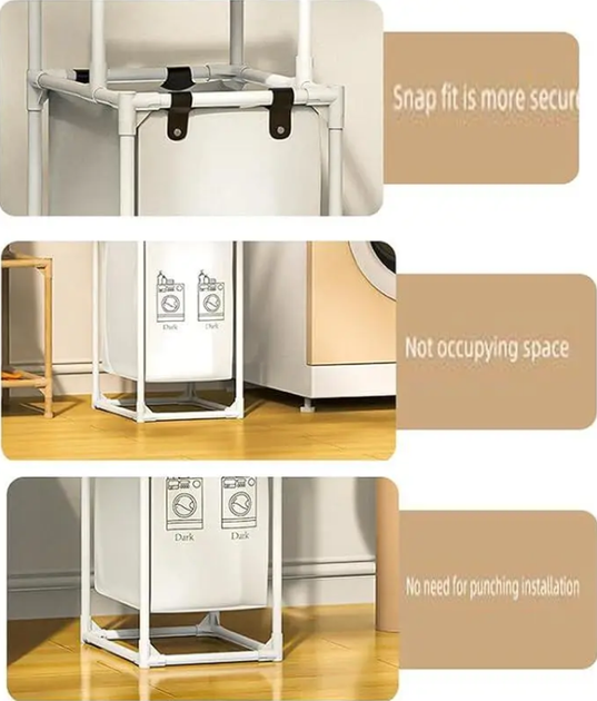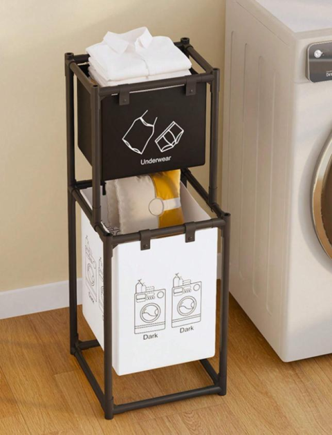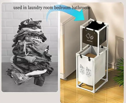 Двошарова конструкція - два окремі відсіки дозволяють розділяти брудний одяг за категоріями, наприклад, за кольором або типом тканини, що спрощує процес прання.