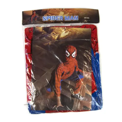 Костюм людина павук класичний червоно-синій зразок і герба.