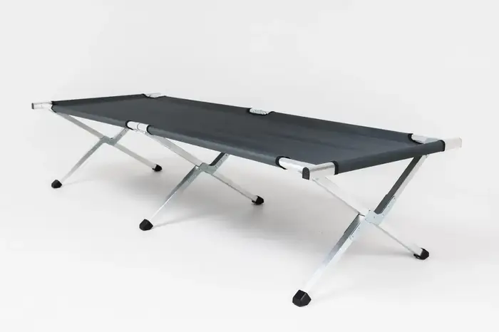 Металева розкладачка Ranger Military Steel витримає великої дорослої людини, у складеному вигляді практично не займає місця.