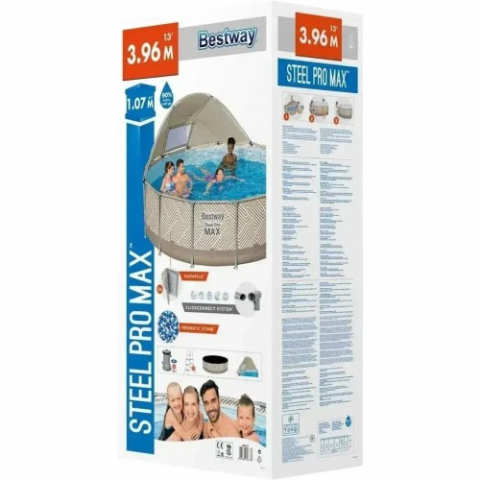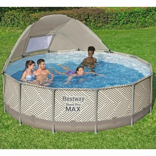 Круглий каркасний басейн із міні-дахом, пісочний фільтр, сходи, тент у комплекті Bestway 561FY 396 x 107 см 11133 л