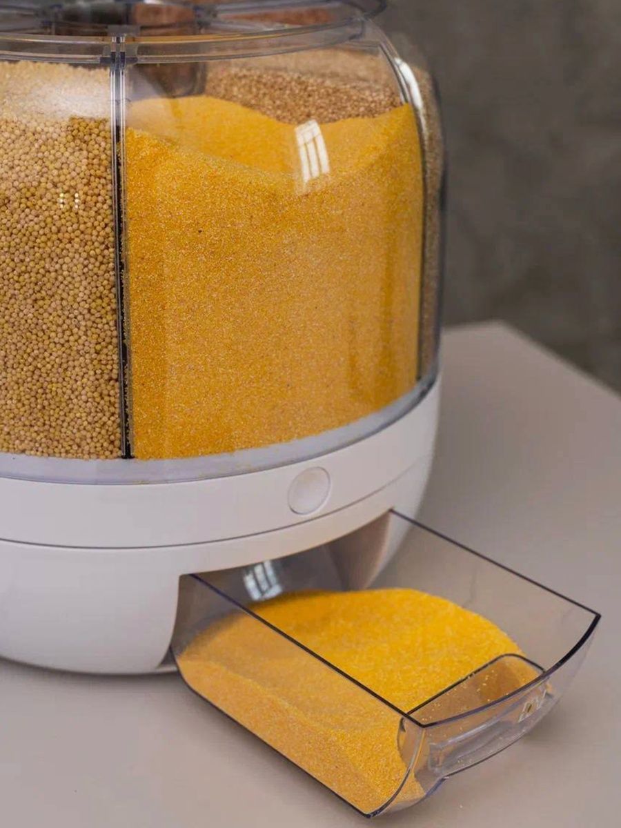 Всі необхідні продукти помістяться у шість просторих відсіків диспенсера. У кожен можна помістити 1 кг крупи