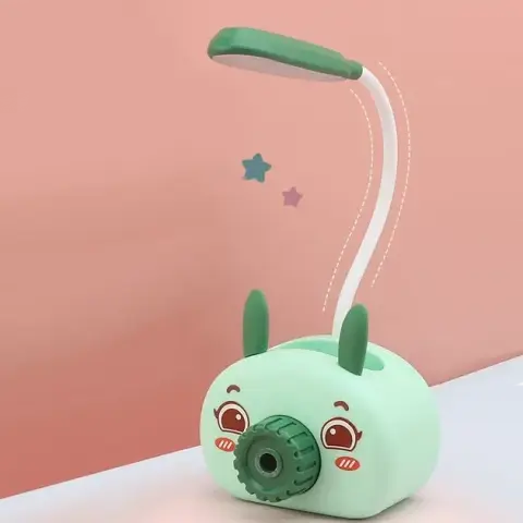 Настільна гнучка багатофункціональна лама, виготовлена з матового ABS пластику. Оснащена настільна лампа вбудованою точилкою для олівців, яка має підсвічування в режимі нічника. Живлення лампи відбувається через кабель micro USB-USB. Також ви можете встановити на підставку свій смартфон для перегляду відео або канцелярське приладдя.