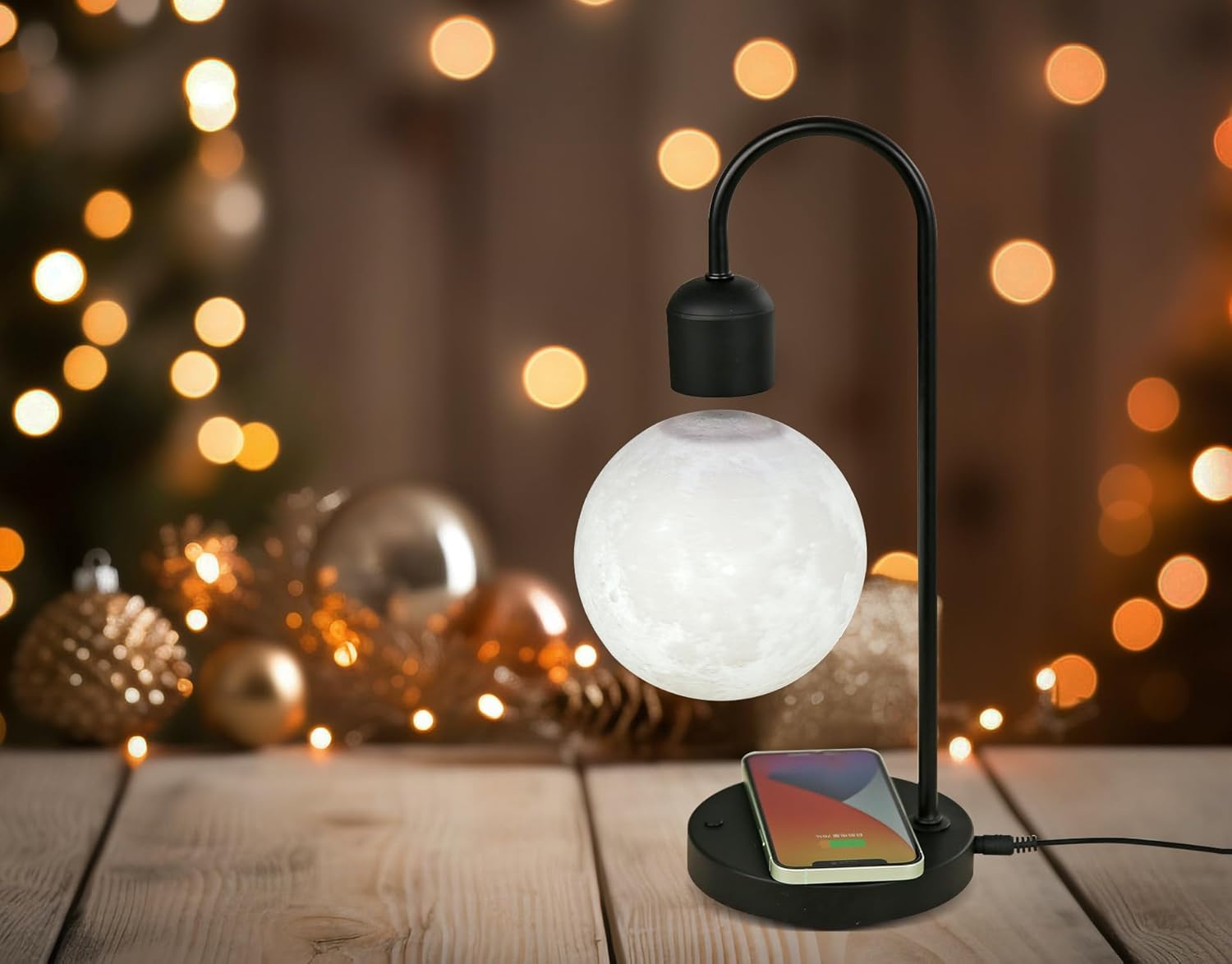 ЛЕВІТУЮЧИЙ МІСЯЦЬ- плаває без будь-якої підтримки або контакту, використовує техніку магнітної левітації, місяць живиться через повітря за допомогою індукції, світло контролюється сенсорною кнопкою: увімкнення/вимкнення на дерев'яній основі.