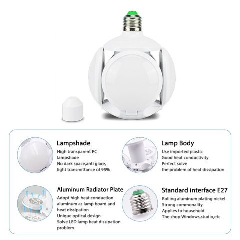 Світлодіодна лампочка, яка перетворюється на люстру завдяки розкладним пелюсткам - це унікальний винахід для можливості регулювання напрямку освітлення, який виглядає дуже гідно і відмінно впишеться в будь-який інтер'єр. Рекомендуємо купити світлодіодну лампу розкладну люстру собі додому або для освітлення громадських приміщень.