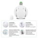 Лампочка має потужність 40 Вт із режимами освітлення від 180° до 360°. Для безпеки лампа забезпечена чіпом Core Chip, який захищає її від перевантажень по струму та напруги. У складеному стані лампочка має розміри 12 х 14.8 см, а в розкладеному 19 х 19 см.