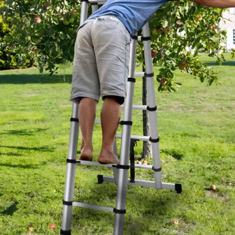 Завдяки компактним розмірам у складеному вигляді сходи не займають багато місця та зручні для транспортування. Для зручності перенесення та зберігання передбачений ремінець фіксації. Вона стане незамінним помічником з ремонту, монтажу, садових та будівельних робіт.
