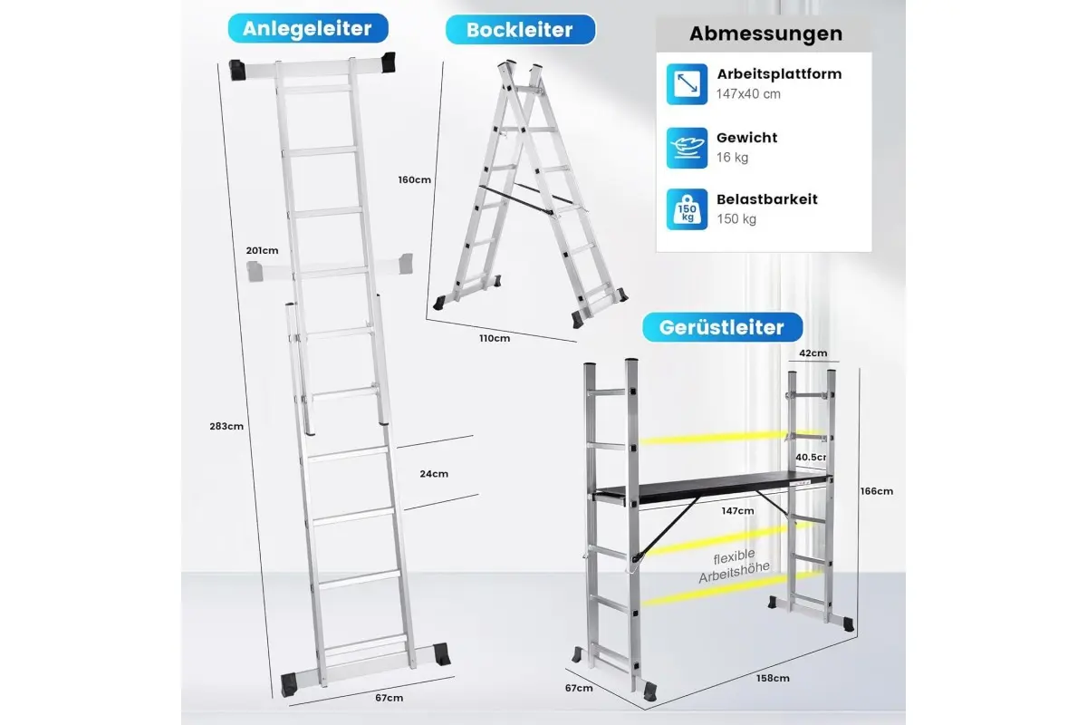 Універсальне використання: одинарні сходи, драбини або штрих з робочою платформою