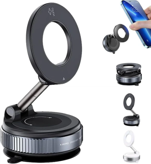 Цей магнітний утримувач забезпечує надійну фіксацію вашого смартфона навіть на нерівній дорозі. Завдяки повороту на 360° ви легко налаштуєте ідеальний кут огляду для навігації, дзвінків чи музики.