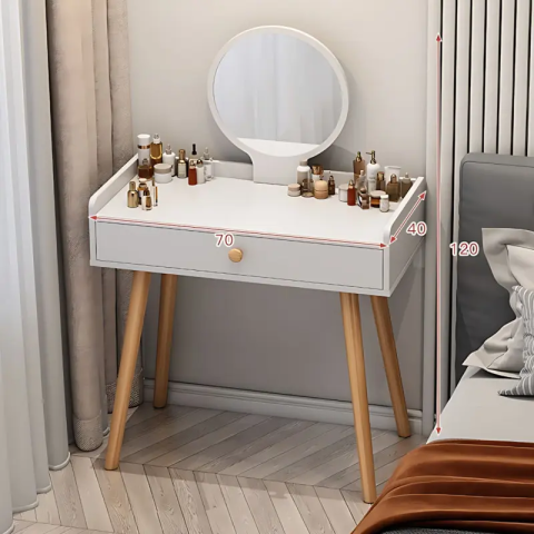 Туалетний столик 70×40×120 см із круглим дзеркалом та ящиком для макіяжу – це стильний та функціональний елемент інтер'єру, який стане ідеальним доповненням вашої спальні чи ванної кімнати. Білий колір та сучасний дизайн роблять його придатним для будь-якого стилю.