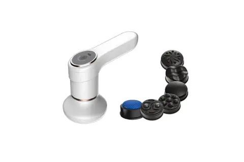 Масажер оснащений різними насадками для точкового впливу на різні частини тіла, що допомагає як для розслаблення м'язів, так скульптурування тіла.