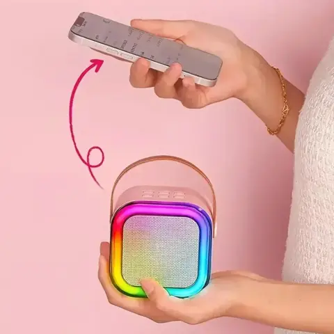 Караоке-колонка з Bluetooth забезпечує високоякісні звукові ефекти за допомогою бездротового міні-мікрофона, додатково створюючи приголомшливі візуальні враження завдяки RGB підсвічуванню. Bluetooth мікрофон забезпечує стабільне підключення, а передова технологія MP3 декодування гарантує чітке та потужне звучання.