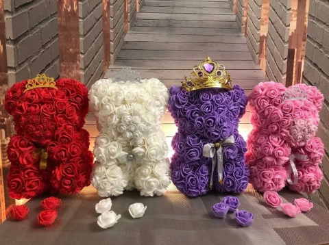 Ведмедик зі штучних 3d троянд 25 см