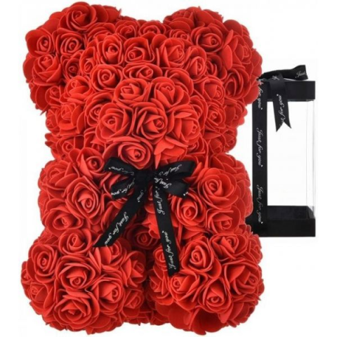 Ведмедик з троянд у подарунковій коробці 25 см ЧЕРВОНИЙ