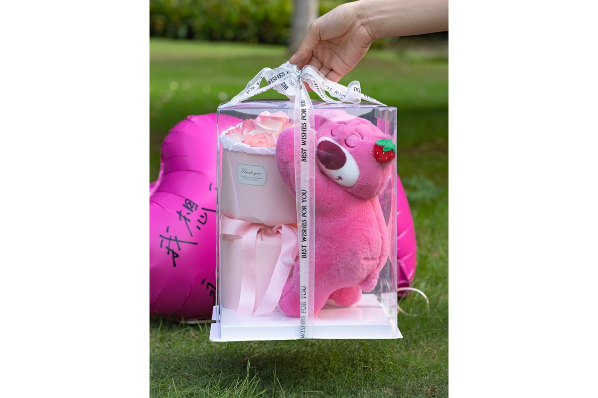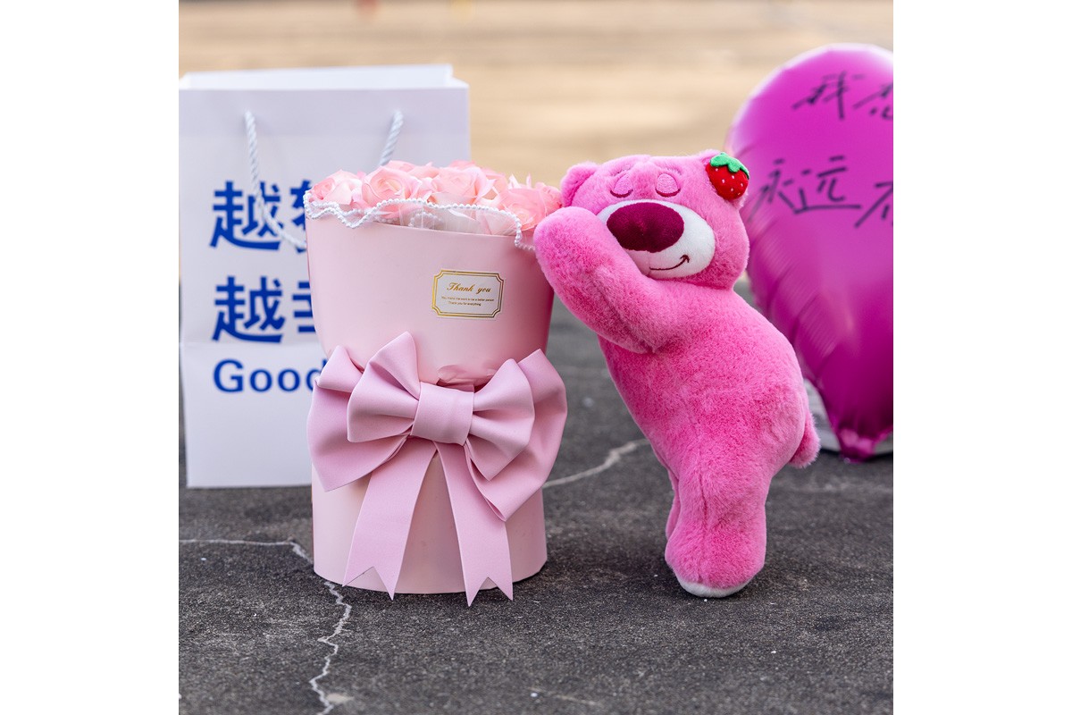 Ведмедик LED з букетом квітів з мила (KR-01-1/2)