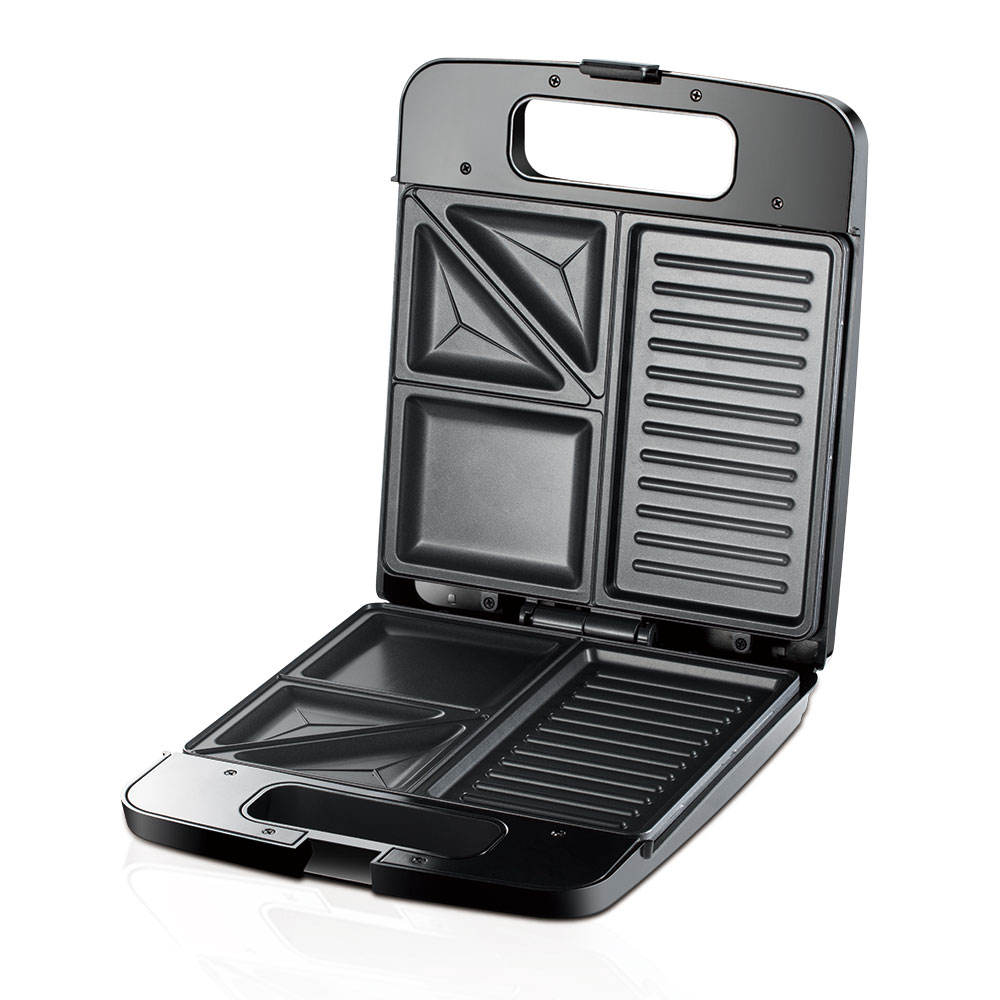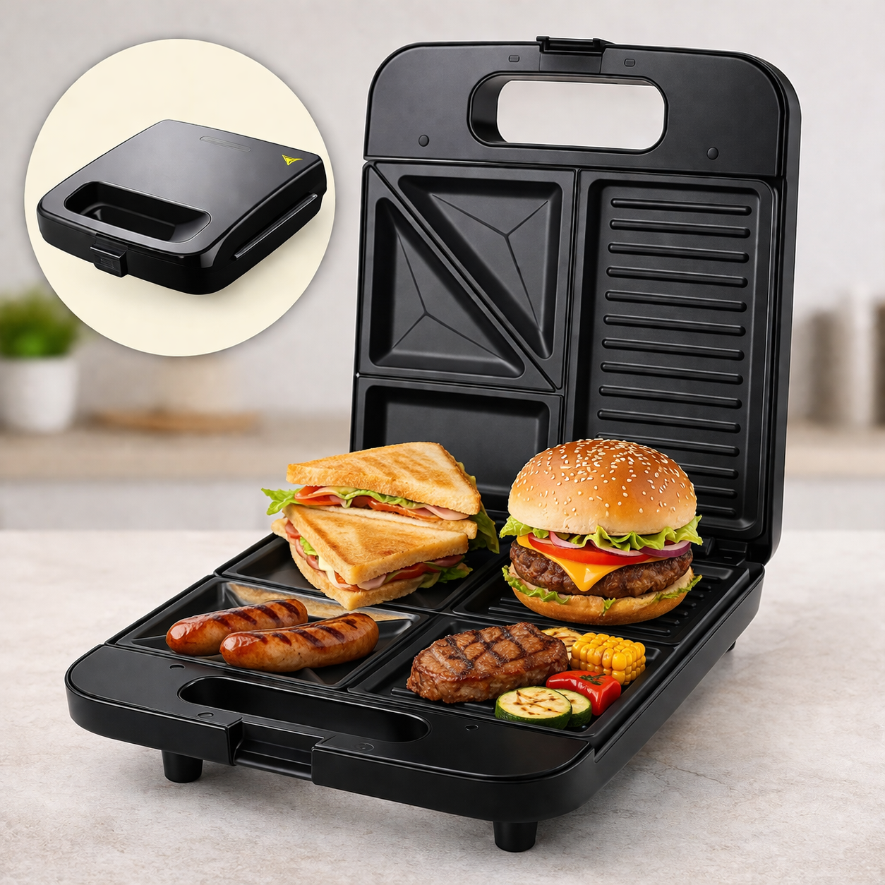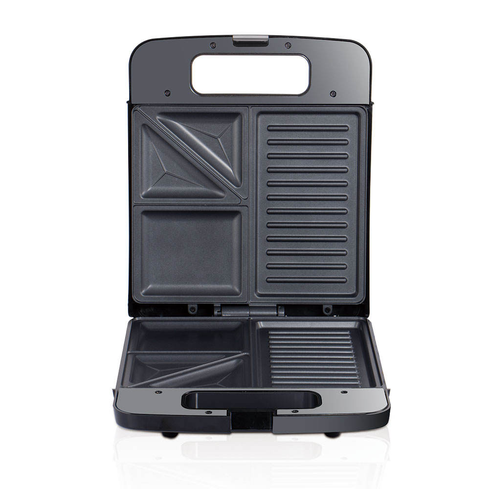 Пристрій підходить не тільки для сендвічів, але і для підсмажування хліба, приготування тостів та невеликих закусок на грилі. Компактна електрична сендвічниця легко розміщується на кухні та швидко нагрівається до робочої температури. Класичний чорний колір корпусу робить пристрій універсальним для будь-якого інтер'єру, а просте управління дозволяє використовувати його щодня легко.