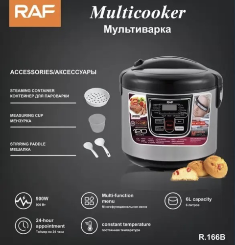 Мультиварка RAF R.166 самостійно приготує страву в певний час і підтримуватиме її в режимі підігріву. Досить просто покласти інгредієнти, вибрати додаток, натиснути кнопку «Старт» і дочекатися приємного звукового сигналу, який сповіщає про приготування страви.