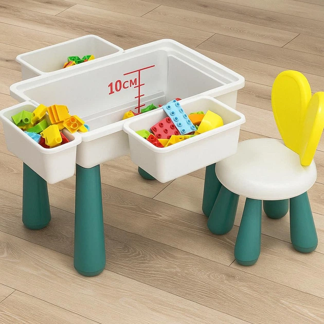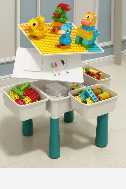 Забудьте про заворушення з іграшками! Цей багатофункціональний дитячий столик не тільки захоплює малюка, але й допомагає підтримувати порядок завдяки вбудованому відсіку для зберігання конструктора.