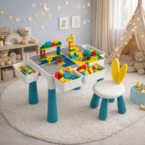Універсальний ігровий столик з конструктором та стільчиком – ідеальне рішення для активного та творчого дозвілля вашої дитини
