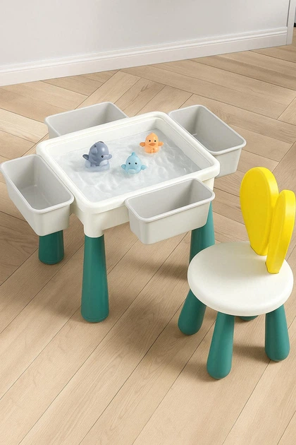 Знявши панель, отримайте місце для води чи піску – завдяки глибині 10 см матеріали залишаються усередині столика, не засмічуючи кімнату.