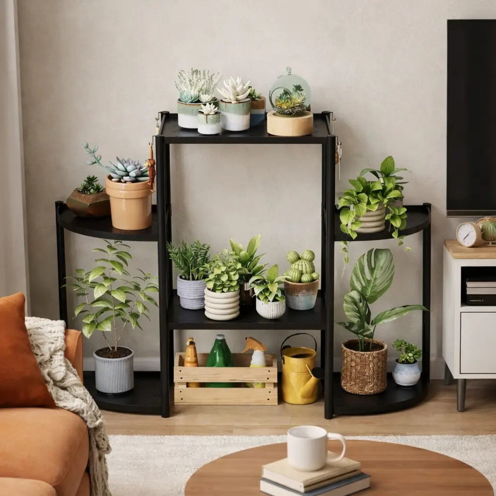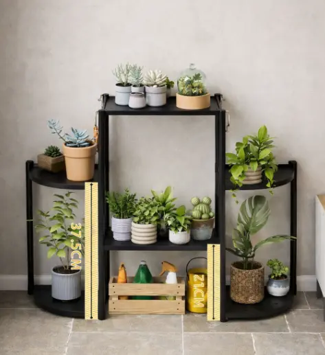 елегантний білий або класичний чорний, що дозволяє вибрати оптимальний варіант під будь-який інтер'єр. Зручні розміри та функціональний дизайн роблять цю етажерку чудовим доповненням до вашої оселі. Розмістіть на ній як сукуленти, так і великі рослини, створюючи зелену атмосферу в будь-якій кімнаті.