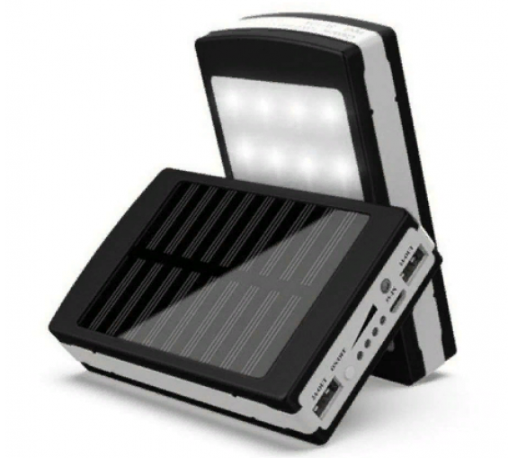 Solar Charger 9000 mAh Power Bank – пристрій, який поєднав у собі всі переваги компактних сонячних панелей, універсальних зовнішніх акумуляторів та LED ліхтарів. Корпус Power Bank виконаний з міцного металу, також прилад має цілу низку систем захисту, які запобігають короткому замиканню, надлишковому рівні заряду, повному і мимовільному розряду, а також перегріву. Ліхтарик має 20 LED діодів, які забезпечують яскраве світло. Наявність трьох режимів освітлення повна яскравість, 50% яскравості дозволять вибрати оптимальний, а режим SOS подати сигнал.