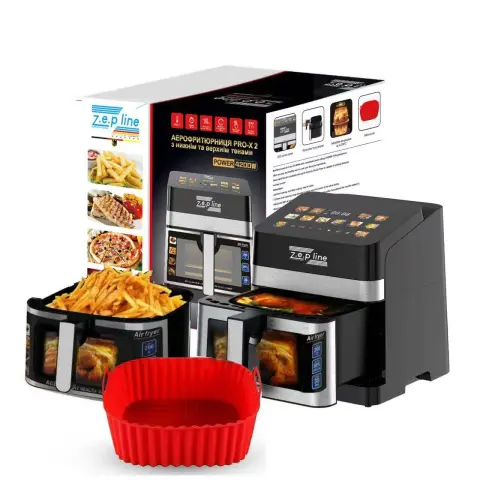 Мультифункціональна аерофрітюрниця Zepline ZP-00343 – це високопродуктивний кухонний прилад нового покоління, призначений для здорового, швидкого та максимально зручного приготування їжі в домашніх умовах. Завдяки поєднанню великого обсягу, надвисокої потужності та інтелектуальних технологій нагріву, модель забезпечує професійний результат без необхідності використання великої кількості олії.