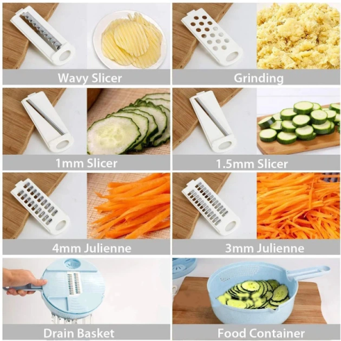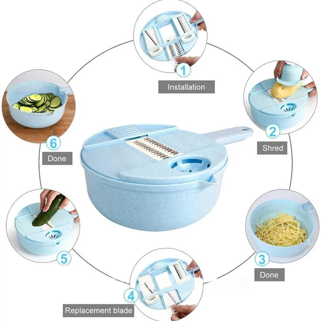 Мультислайсер 10 в 1 NK 001 – незамінний помічник на кухні, що дозволяє швидко нарізати овочі та фрукти різними способами. У комплекті багато різних пристроїв для нарізки та терки. Овочерізка легко миється у теплій воді з милом, а зберігати її можна у спеціальному контейнері. Цей товар – чудовий подарунок для любителів готувати та стежити за здоров'ям.