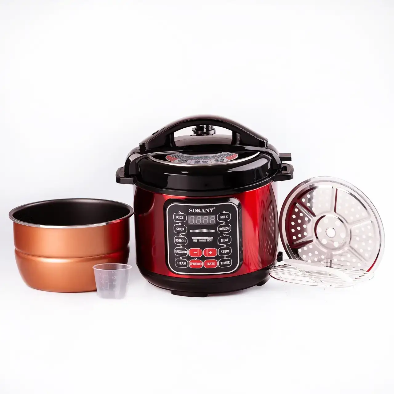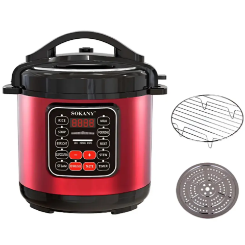 Мультиварка електрична на 5 л потужністю 1000 Вт. Sokany SK-2402 Червона Скороварка на 10 програм