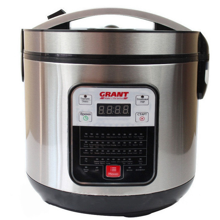 Мультиварка Grant GT 525" на 46 програм і об'ємом 5 літрів - це простий і зрозумілий кухонний прилад, який призначений для готування страв різними способами обробки. Управління електронне та дуже просте – для кожної програми є власна кнопка. Інформація та час відображаються на рідкокристалічному дисплеї.