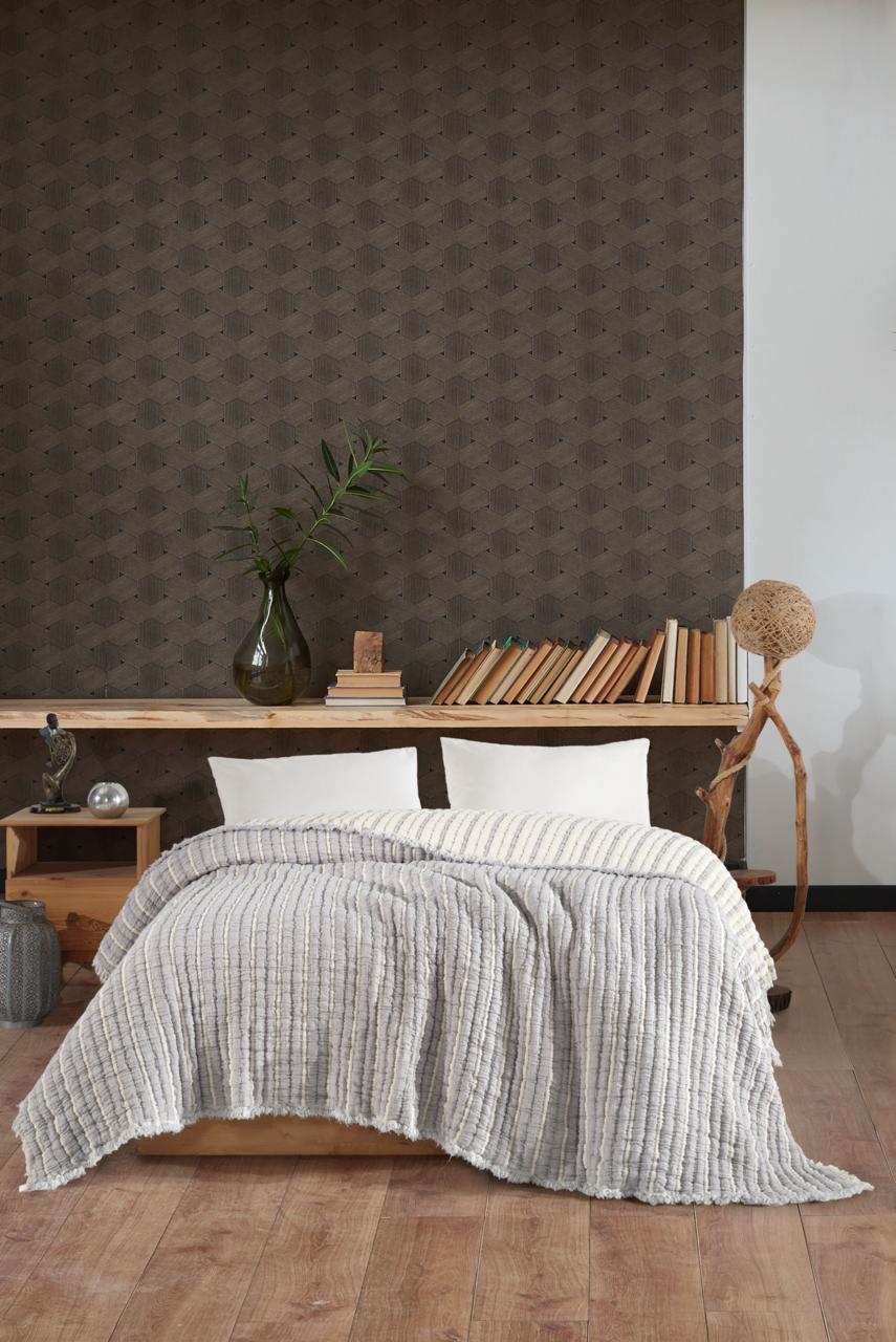 Завдяки великому розміру 230х250 см, виріб чудово драпірується на двоспальному ліжку, закриваючи матрац. Також його можна використовувати як стильний плед для дивана або як легку ковдру (піке).