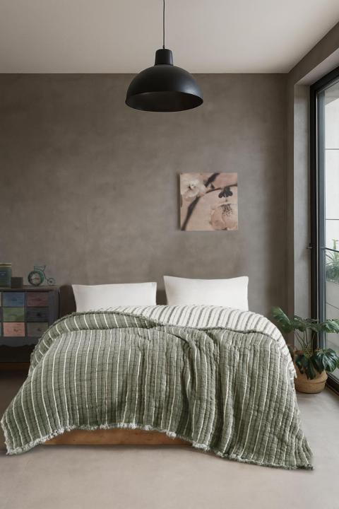Додайте вашій спальні атмосфери легкості та еко-шику з мусліновим покривалом Moss Botanic. Це втілення сучасного тренду на натуральність та комфорт. Виготовлене з багатошарового мусліну (100% бавовна), покривало має унікальну "жату" фактуру, яка виглядає стильно і не вимагає прасування.