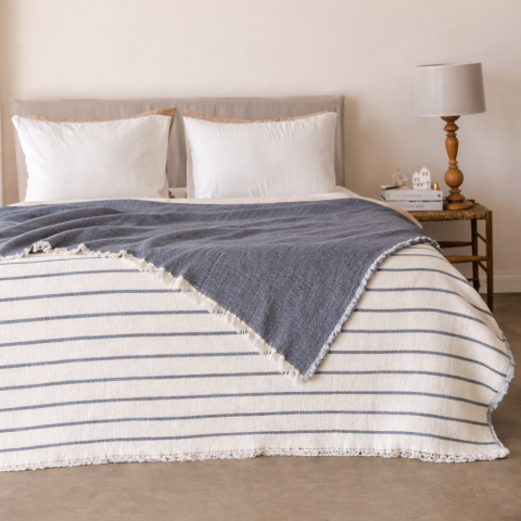Завдяки великому розміру 230х250 см, виріб чудово драпірується на двоспальному ліжку, закриваючи матрац. Також його можна використовувати як стильний плед для дивана або як легку ковдру (піке).