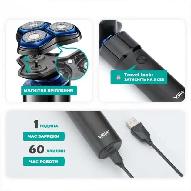 Електробритва VGR V-325 від USB – це пристрій для бритв спеціально розроблений для чоловіків. Вона має безліч функцій та характеристик, які роблять процес гоління зручним та ефективним. Бритва має стильний і сучасний дизайн, що зручно лежить в руці і забезпечує комфортне гоління.