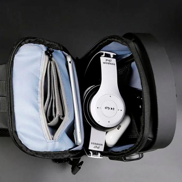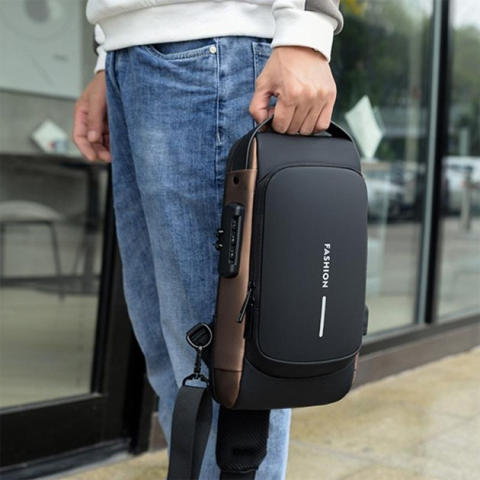 Сумка-слінг через плече із системою захисту "Анти злодій" оснащена кодовим замком із 3-х цифр. Висока якість матеріалів забезпечує відмінну стійкість до пошкоджень та впливу води. Продуманий дизайн дозволяє носити всі необхідні речі та заряджати гаджети прямо на ходу!