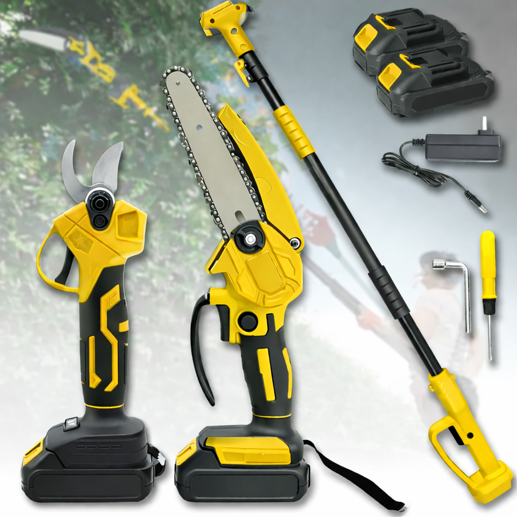 Набір 3в1 пила 6 дюймів, секатор+висоторіз телескопічний 2м 2АКБ Жовтий