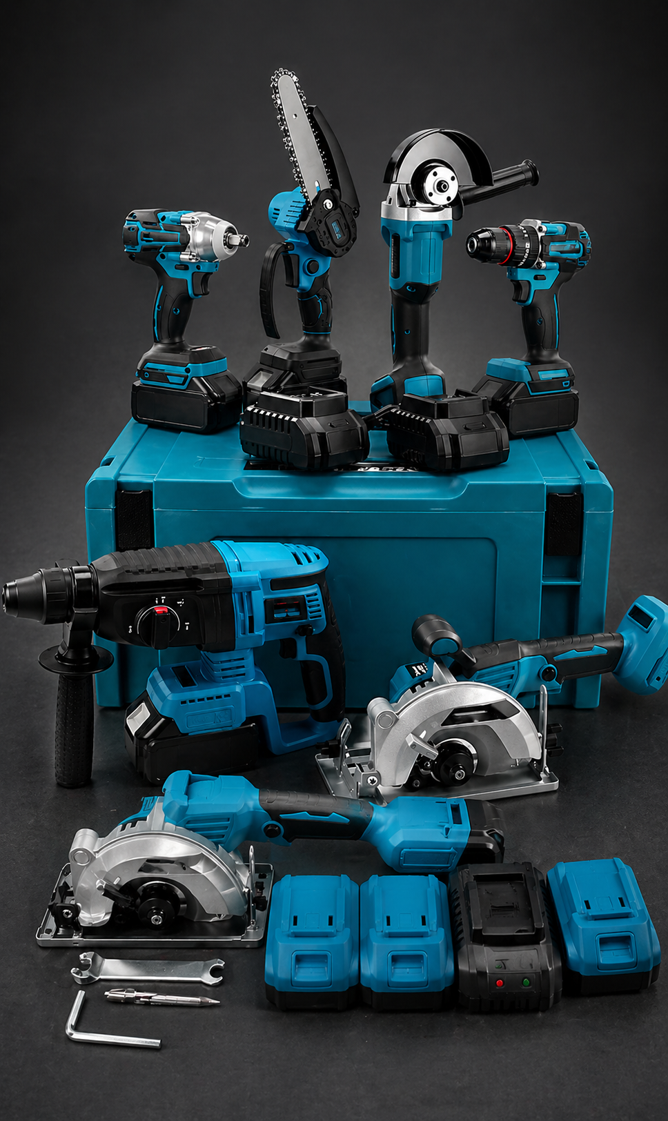 Універсальний комплект, який дозволяє виконувати широкий спектр завдань: ремонт, монтаж, різання, свердління та обслуговування техніки. Всі інструменти зібрані в одному кейсі, що робить набір зручним для зберігання та транспортування.