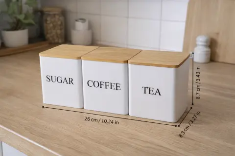 Стильний та практичний набір для зберігання цукру, кави та чаю, який ідеально доповнить інтер'єр кухні.