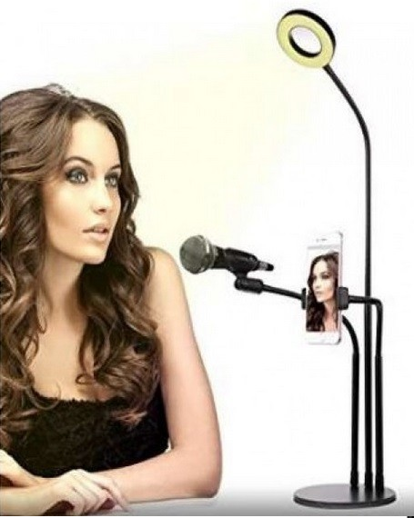 Набір блогера 3в1 Гнучкий штатив з Led кільцем Ring Light + тримачі для телефону та мікрофона на підставці