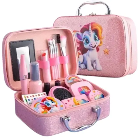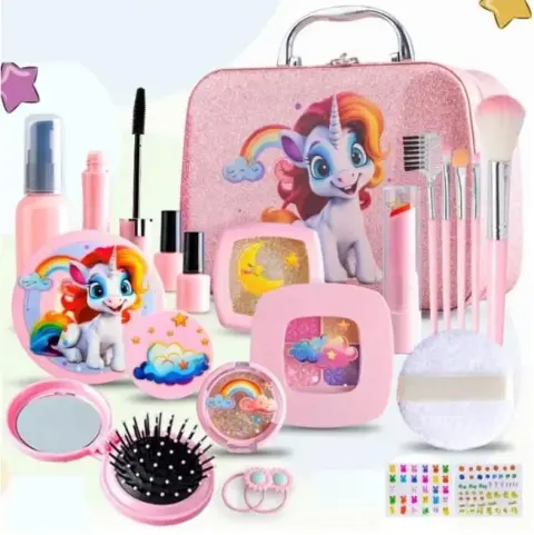Чарівний саквояж з яскравою косметикою та аксесуарами – без сумніву, бажаний подарунок для маленької принцеси, особливо якщо вона у стилістиці улюблених персонажів – райдужних єдинорігів.