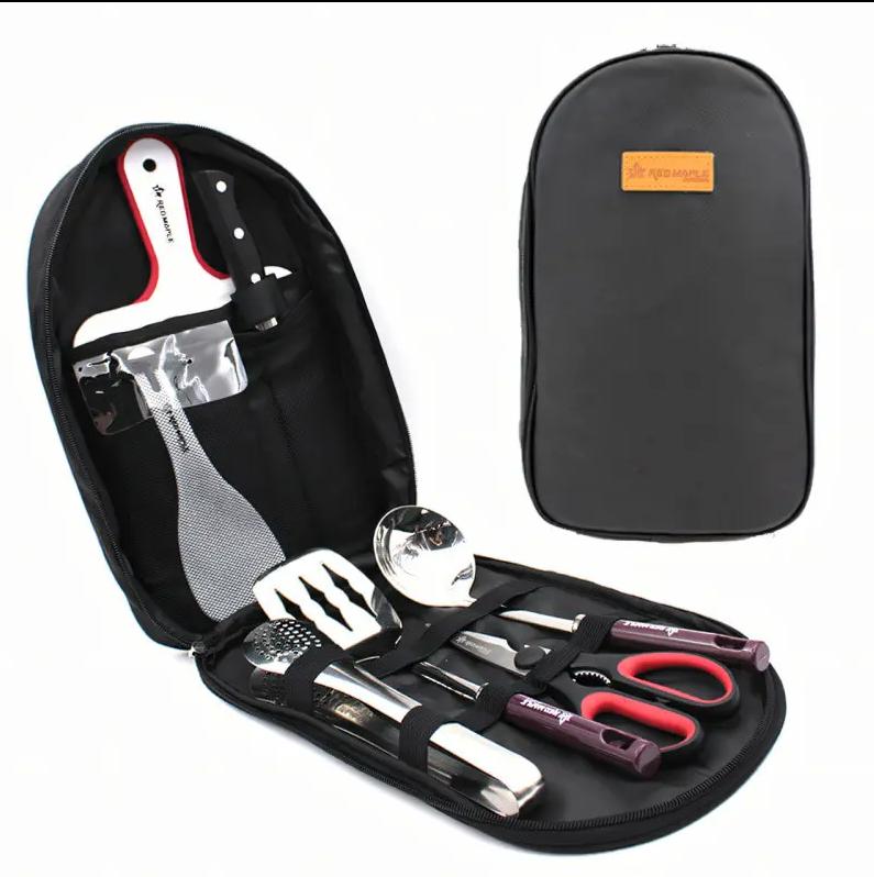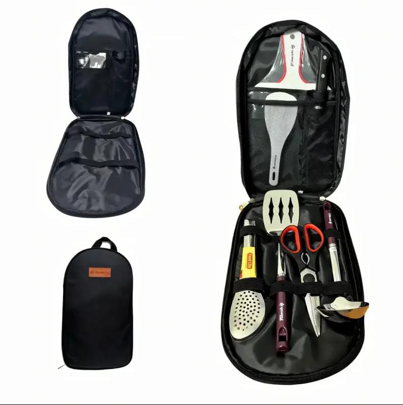 1.Легкий та зручний для перенесення: набір кухонного приладдя для вулиці має компактну конструкцію, велику місткість та легку вагу. він оснащений сумкою з тканини оксфорд, яку легко переносить та використовувати на кухні. він також дуже підходить для подорожей на відкритому повітрі, походів, кемпінгу та інших видів діяльності і може легко задовольнити різні потреби.
